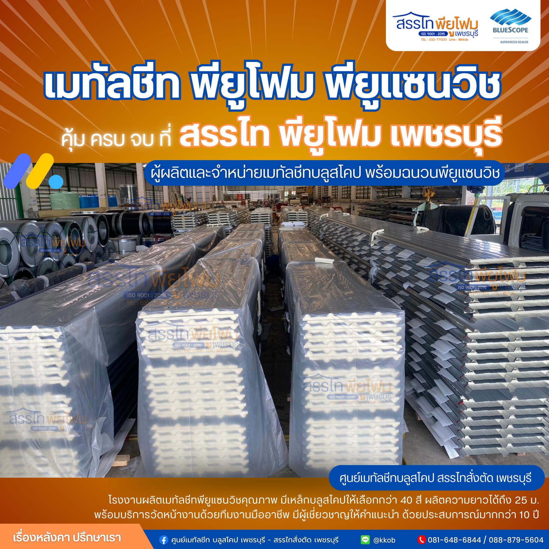 จำหน่ายแผ่นหลังคาเมทัลชีท ชะอำ เพชรบุรี แผ่นหลังคาเมทัลชีท ลอนแผ่นเมทัลชีท หลังคาพียูโฟม เพชรบุรี ก.กอบชัย - สรรไทสั่งตัด เพชรบุรี มีลอนให้เลือกหลายรูปแบบ ลอนสรรไท Trimdek 760 มีหลังคา ผนัง ลอนเสือไท Trimmax 825 มีหลังคา ผนัง ฝ้า ลอน BL40 - 760 มีหลังคา ลอนพาเนล ริบ Panel Rib 850 มีผนัง ฝ้า ลอนสแนปล็อค Snaplock 32 - 313 มีหลังคา ผนัง ฝ้า ลอนพาเนล วอลล์ Panel Wall 630 มีผนัง ฝ้า ลอนระแนง รั้วระแนง ให้บริการปรึกษาเรื่องการสร้างหลังคาบ้าน เรื่องสินค้า เรามุ่งเน้นบริการให้ครอบคลุมงานแผ่นหลังคา ตอบสนองทุกความต้องการของลูกค้า